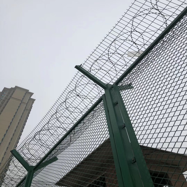 監(jiān)獄護欄網(wǎng)常見的一種是鋼板網(wǎng)式監(jiān)獄護欄網(wǎng),鋼板網(wǎng)式一張整板整體沖壓后制作成網(wǎng)片,然后焊接上邊框立柱,上邊架上刀片刺繩組合而成。監(jiān)獄鋼板網(wǎng)護欄網(wǎng)相比較于普通焊接網(wǎng)片監(jiān)獄護欄網(wǎng),鋼板網(wǎng)的抗裁剪,不開焊,美觀等特點尤為突出。