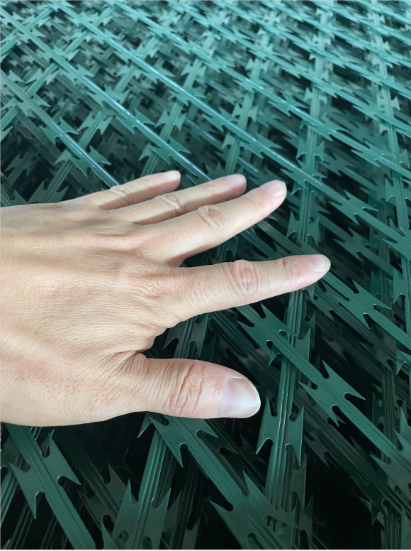 圍墻巡邏道隔離網建設于內外墻地面及高墻之上,網墻內側或頂部加裝蛇腹形刀刺網,形成-道高不可攀、難以逾越的隔離障礙。配合高壓打擊電網、各種監控報警設備確保場所安全萬無一失。
