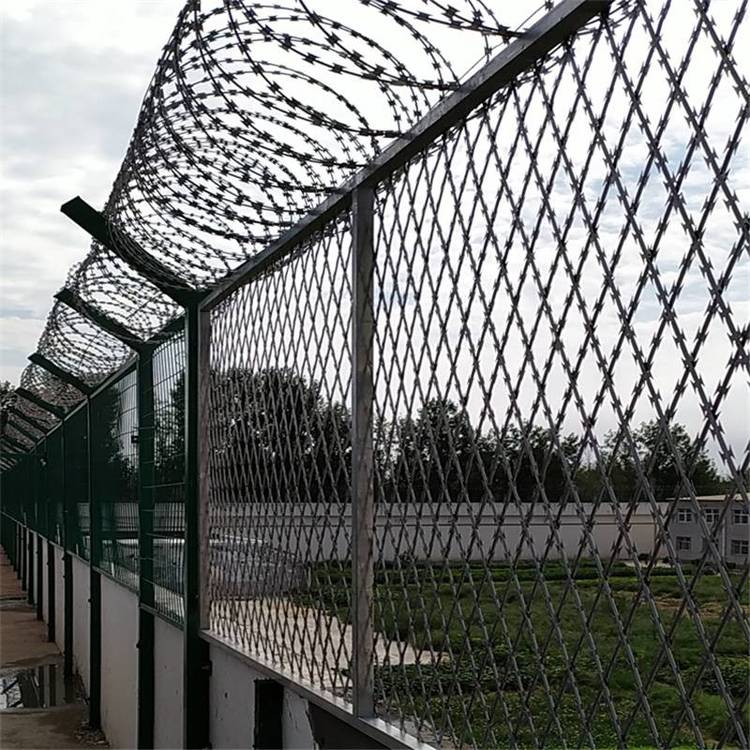 穎、堅(jiān)固緊密、網(wǎng)面平整、網(wǎng)孔均勻、刀鋒銳利、防攀爬抗腐蝕性強(qiáng)等特點(diǎn)。建設(shè)于監(jiān)獄的內(nèi)外墻地面及高墻之上。