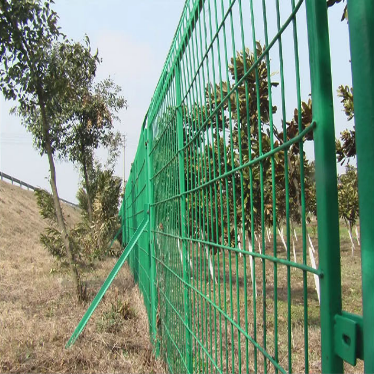在一些有明顯拐彎的地方同樣也要采用斜撐固定的方式來固定位于彎折角上面的鐵絲網圍欄柱子,這樣就可以萬無一失的保護好圍欄網不被自身的張力所變形彎曲甚至是倒塌。同時如果是在坡道上面安裝鐵絲網圍欄還需要進行額外的支撐,以防上方滾落雜物導致圍欄網受力變形。