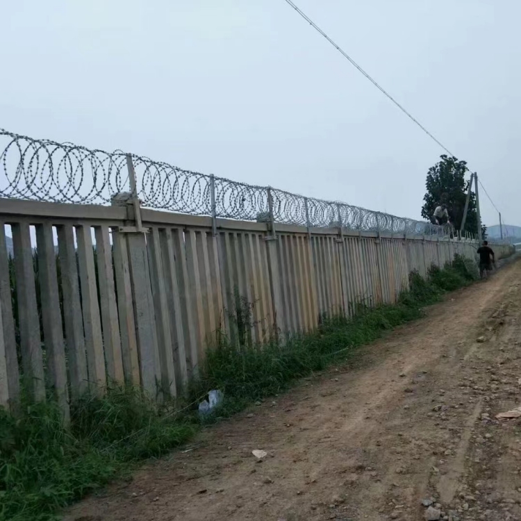 通常來(lái)說高鐵兩側(cè)應(yīng)用刺絲滾籠的話會(huì)用到水泥制圍欄而刀片刺繩則是安裝到了圍欄上面防止翻越的。在設(shè)計(jì)上面不同的地形設(shè)計(jì)成了不一樣的樣式,