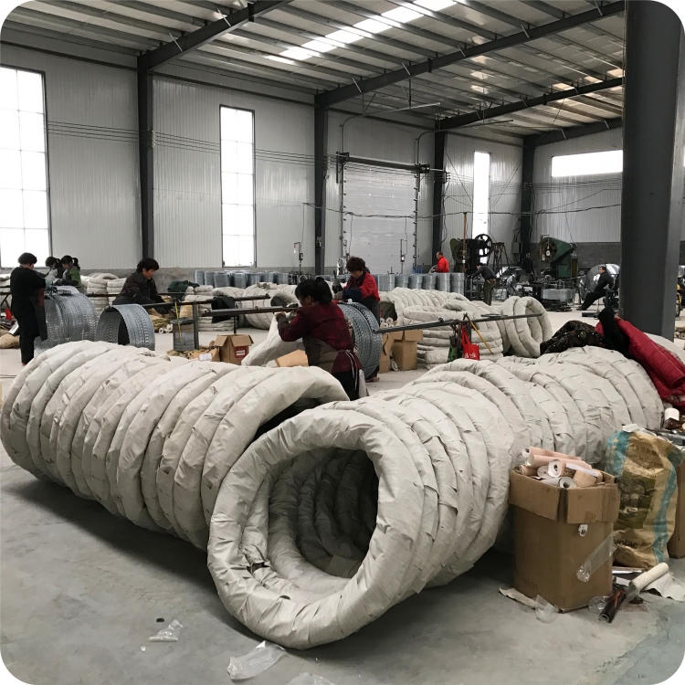針對(duì)刺絲滾籠和雙股刺繩對(duì)于上鋅量是明顯的要求了,此外包括一些安裝長(zhǎng)度和直徑等等方面要求也是比較多的。張開后形成蛇腹網(wǎng)狀,閉合后刀片刺繩圈徑為50cm,張開后每交叉圈安裝間距20cm,直徑不小于45cm,刀刺寬度22mm,兩刃垂直間距15cm,刀刺縱向間距34mm,芯絲直徑為2.5mm,刀片采用厚度0.5mm的Q195鋼板沖切制作,芯絲由HPB300直徑6.5m高線鋼絲冷拔加工。這樣名列出嚴(yán)格的技術(shù)要求也是為了保障安全和使用壽命。這里面我們要指出的一點(diǎn)就是小型的支架是為加密而設(shè)計(jì)的,而最大的刺繩支架是在階梯交接的地方進(jìn)行安裝和固定的。安裝工序是肯定是先固定支架了,一般都有專門的u型螺栓抱咂在水泥制的圍欄上面只需要固定.