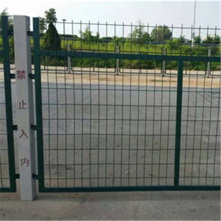 鐵路防護柵欄又稱鐵路隔離柵是用于鐵路兩側的隔離防護設施起隔離和防護作用的護欄網產品,應用于高速公路、鐵路、高鐵、大型場地安全防護用。采用高強度低碳鋼絲、鋁鎂合金絲,或鍍鋅絲編織焊接而成,具有組裝靈活、結實耐用的特點,既可以制作成護欄網墻使用,也可以用做臨時隔離網,在使用中只需采用不同的立柱固定方式便可安裝(立柱還包括水泥柱子),產品防腐 防曬 防水表面處理有、電鍍、熱鍍、噴塑、浸塑的方式。鐵路護欄在國內許多高鐵、高速公路 等道路兩側大量使用。產品表面顏色為墨綠色和草綠色,鍍層厚度為0.5~0.6mm,鍍粉采用抗老化性能的進口耐候性樹脂粉料,表面光滑。鐵路防護柵欄邊框有角鐵或者鋼管兩種焊接方式