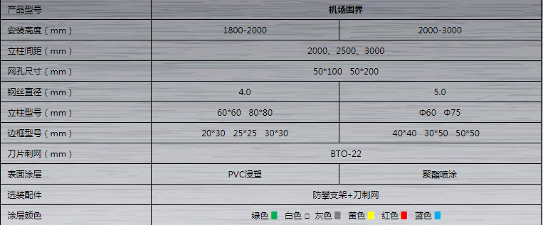 特點:如果在機場護欄網(wǎng)頂部加裝刀片刺絲、刀片刺繩后又很好的增強了安全防護性能。采用電鍍、熱鍍、噴塑、浸塑等防腐形式,具有很好的抗老化、抗曬、耐候等特點。其產品造型美觀、花色多樣,既起到圍欄作用,又起到美化作用。由于具有安全性高、防攀爬能力好,網(wǎng)片連接方式采用特制SBS緊扣件,有效防止人為的破壞性拆卸,橫向四道折彎加強筋,使網(wǎng)面強度顯著增加。