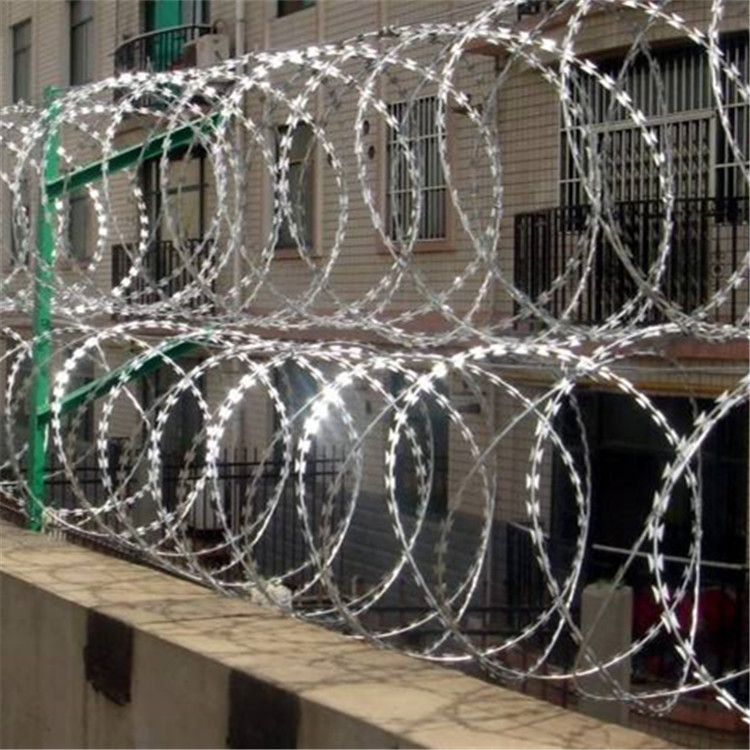 為了加強(qiáng)圍欄的高安全性,常有客戶要求在護(hù)欄的上面在一層刀片刺網(wǎng)來加強(qiáng)安全性能。刀片刺網(wǎng)具有美觀、經(jīng)濟(jì)實(shí)用、防阻效果好、施工便利等優(yōu)異特點(diǎn),刀片刺網(wǎng)常見的表面處理有電鍍鋅,熱鍍鋅和噴塑處理。目前,刀片刺網(wǎng)已被廣泛應(yīng)用于許多國家的工礦企業(yè)、園林公寓、邊防哨所、軍事領(lǐng)域、監(jiān)獄、看守所、政府建筑物和其他國家的安全設(shè)施。