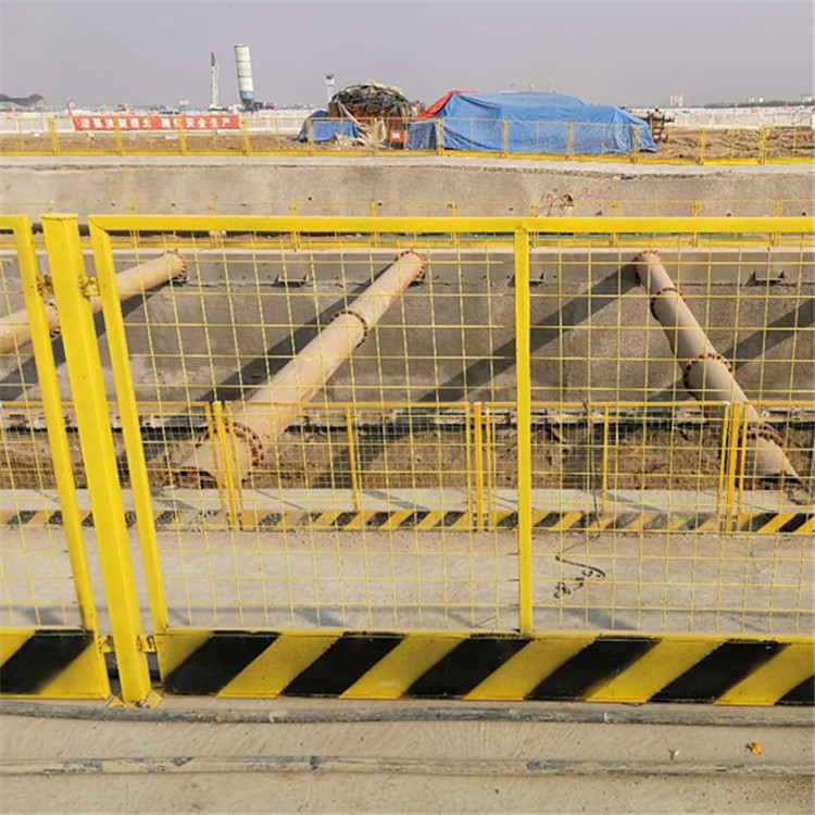 第一種是用2*2cm和2*3cm方管焊接的框架,底端必須用20厘米高的鐵板焊接,上側是焊接在框架頂部的金屬絲網或鋼絲網。這是框架護欄,但下端從底部到頂部20厘米,并且鐵板已焊接,鐵板的厚度通常為0.6-1.2mm。在基坑護欄網的外表面一般都是采用噴涂的方式,顏色大都是黃色、藍色、白色、紅色等等。
