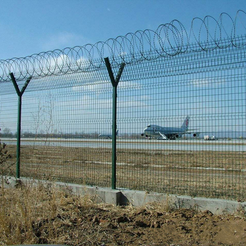 飛機場護欄網(wǎng)又叫機場圍界護欄網(wǎng)、機場隔離網(wǎng)、機場隔離柵等,是作為飛機場邊界保護的重要設(shè)施,防止對機場設(shè)施的破壞,保證機場安全,讓飛行更加順利。飛機場護欄網(wǎng)又稱作“Y型安全防御護網(wǎng)”,由V型支架立柱,加強型焊接片網(wǎng),安全防盜連接件和熱鍍鋅刀片刺籠組成強度和安全防御性級別很高。該形式的護欄網(wǎng)近年來,被廣泛應(yīng)用在機場,軍事基地等高安全場所。在護欄網(wǎng)頂部加裝刀片刺絲、刀片刺繩后又很好地增強了防護性能。