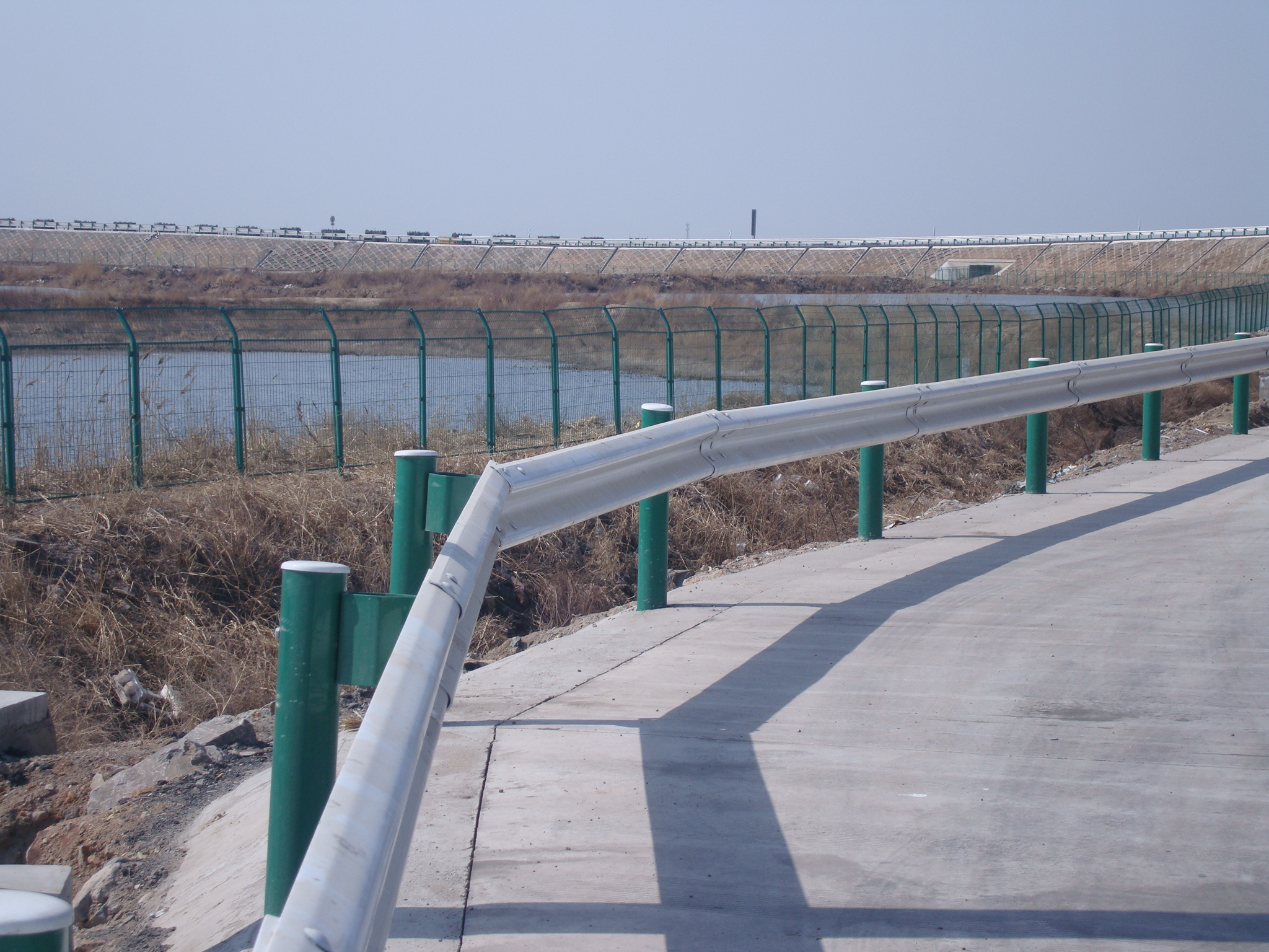 在選擇公路兩旁使用的道路圍欄網(wǎng)的時候要注意,應(yīng)針對每條高速公路的具體情況,充分比較各種隔離網(wǎng)的性能,分析行駛安全感、壓迫感、視線誘導(dǎo)、了解的舒適性,并考慮與公路周邊環(huán)境的協(xié)調(diào),結(jié)合經(jīng)濟(jì)性、施工條件及養(yǎng)護(hù)維修等因素,在綜合分析的基礎(chǔ)上確定。道路波形梁網(wǎng)屬半剛性結(jié)構(gòu),具有較強(qiáng)的吸收碰撞能量的能力,具有較好的視線誘導(dǎo)功能,能與道路線形相協(xié)調(diào),外形美觀,可在小半徑彎道上使用,損壞處容易更換。對于車輛越出道外,有可能造成嚴(yán)重后果的片段,可選擇加強(qiáng)波形梁隔離網(wǎng)。