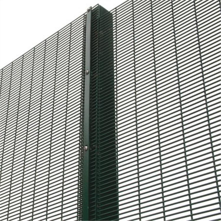 358加密防攀爬隔離網(鋼網墻)網面尺寸:網高: 2.5m-3.5m;網寬: 2.0m-2.5m.358加密防攀爬隔離網(鋼網墻)材質:低碳鋼絲, PVC涂塑。