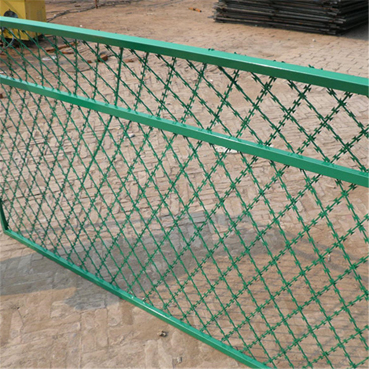 刀片刺網(wǎng)又名刮刀型刺絲,是一種近年發(fā)展起來的防護、隔離能力較強的新型防護網(wǎng)產品。它采用鋼板沖壓成型包附于鋼絲(筋絲)之上,由銳利尖角鍍鋅鋼板或不銹鋼薄板做刀片,高張力鋼絲做芯線組合而成的。鋒利的刀型刺由雙線扣裝后成蛇腹狀,既美觀又讓人不寒而粟。起到了很好的阻嚇作用。該產品具有美觀、防阻效果好、施工便利等優(yōu)點。世界各國已將刀片刺網(wǎng)廣泛用于軍事重地、監(jiān)獄、政府機關、銀行,以及生活小區(qū)圍墻、私人住宅、別墅的圍墻、門窗、高速公路、鐵路護欄以及邊境線等用來防護保安。